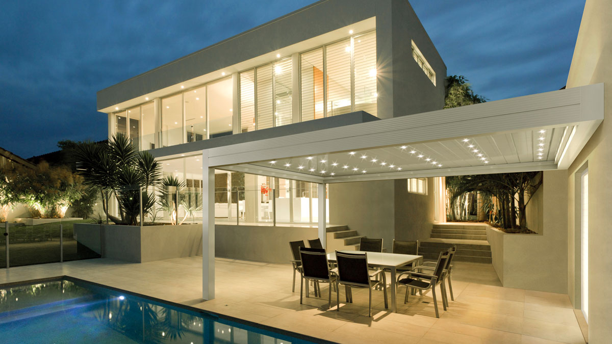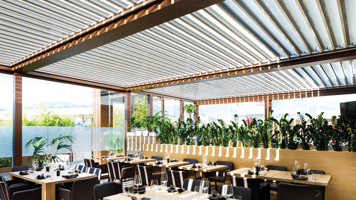 Unsere bioklimatischen Pergolen stehen in ständiger leiser Zwiesprache mit der Natur, um Ihnen bei jedem Wetter eine absolut konstante Wohlfühlatmosphäre zu bieten.